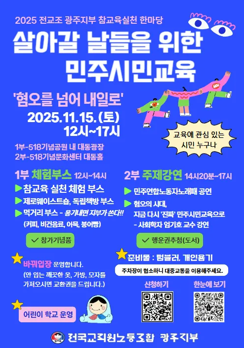 2025 전교조 광주지부 참교육실천한마당과 함께 하는 축제의 장에 많은 참여바랍니다.