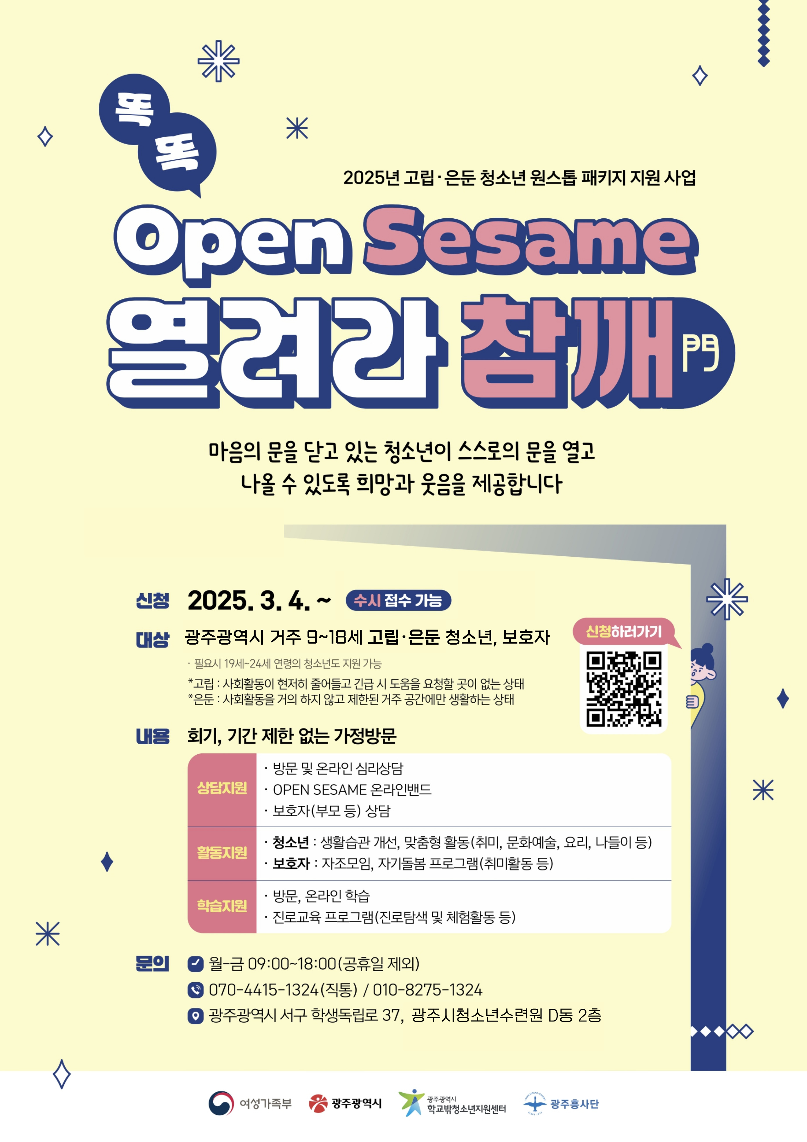 주소 : 광주광역시 서구 학생독립로 37, 광주시청소년수련원 D동 2층, 광주광역시 학교밖청소년지원센터
