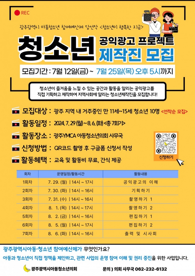 광주광역시 아동·청소년 참여예산제 당선작 [청소년 공익광고 프로젝트‘청소년이 행복한 지금’] 청소년제작진 모집